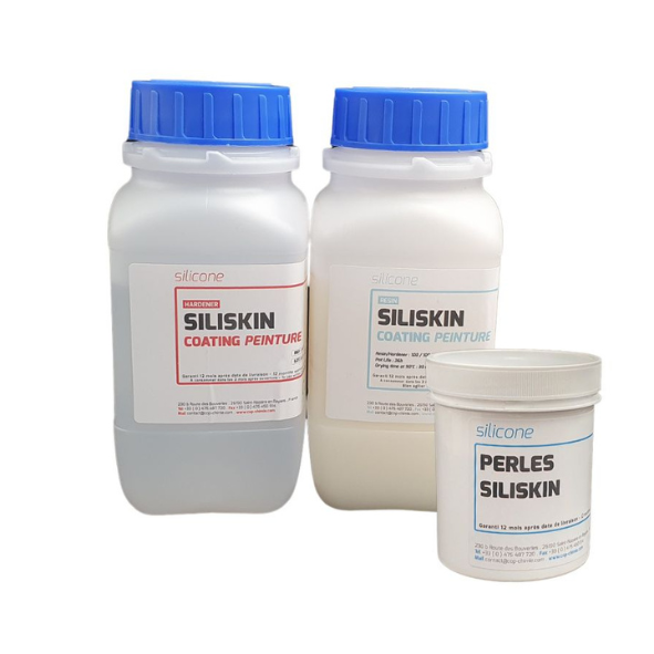 SILISKIN består av tre komponenter: resin, härdare och pulver. Pulvret beställs separat.